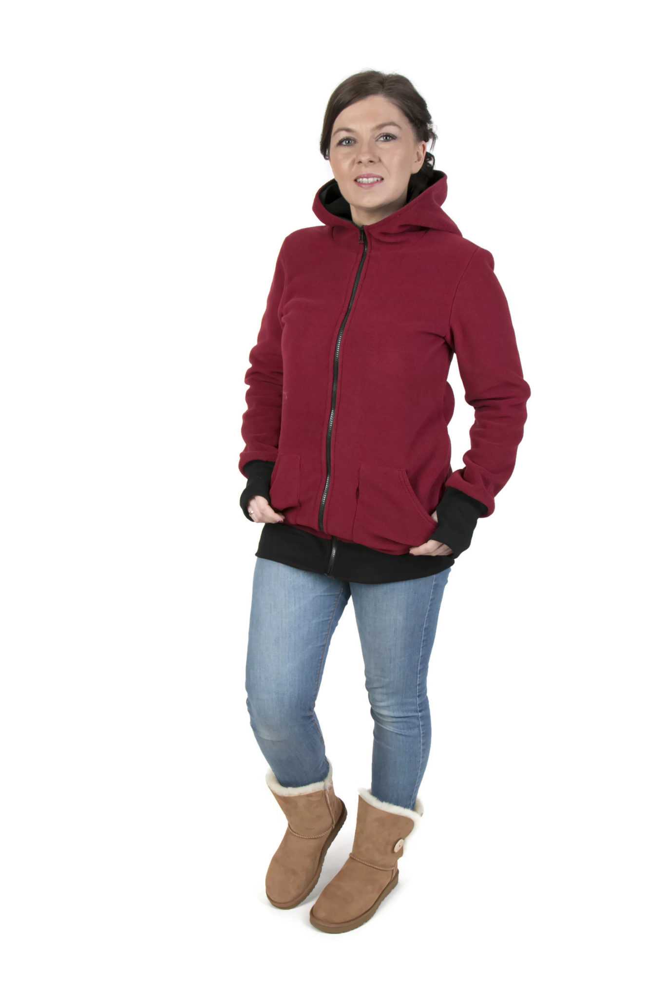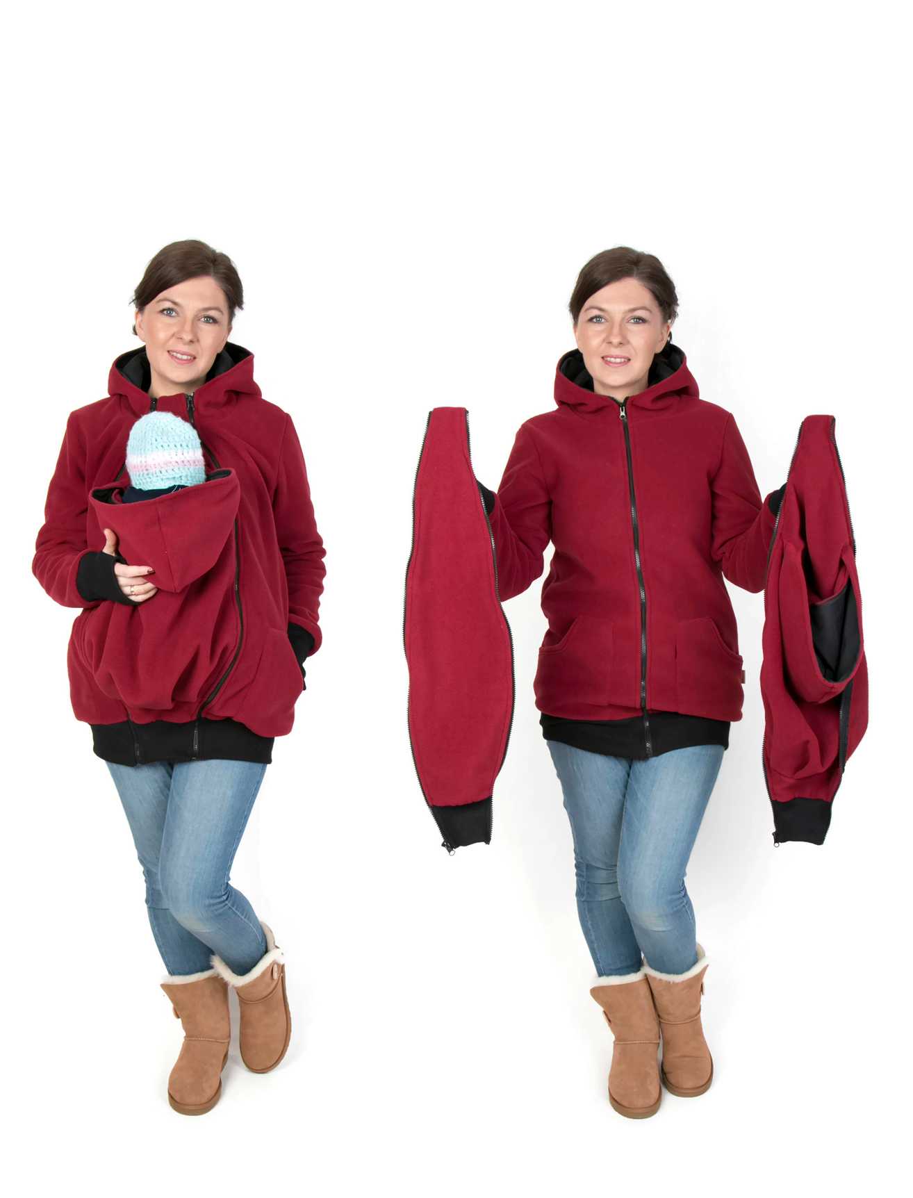 Luna 3in1 Baby Tragejacke Mutterschaft Schwangerschaft Känguru Polarfleece Hoodie für Mama und Baby DUNKELROT