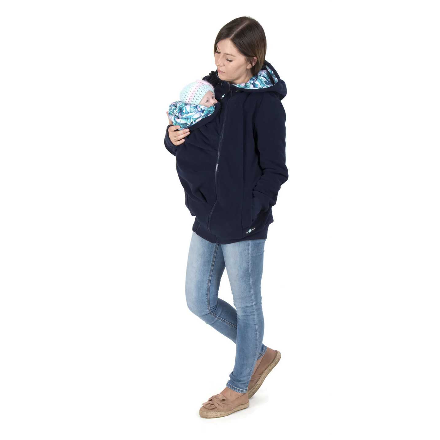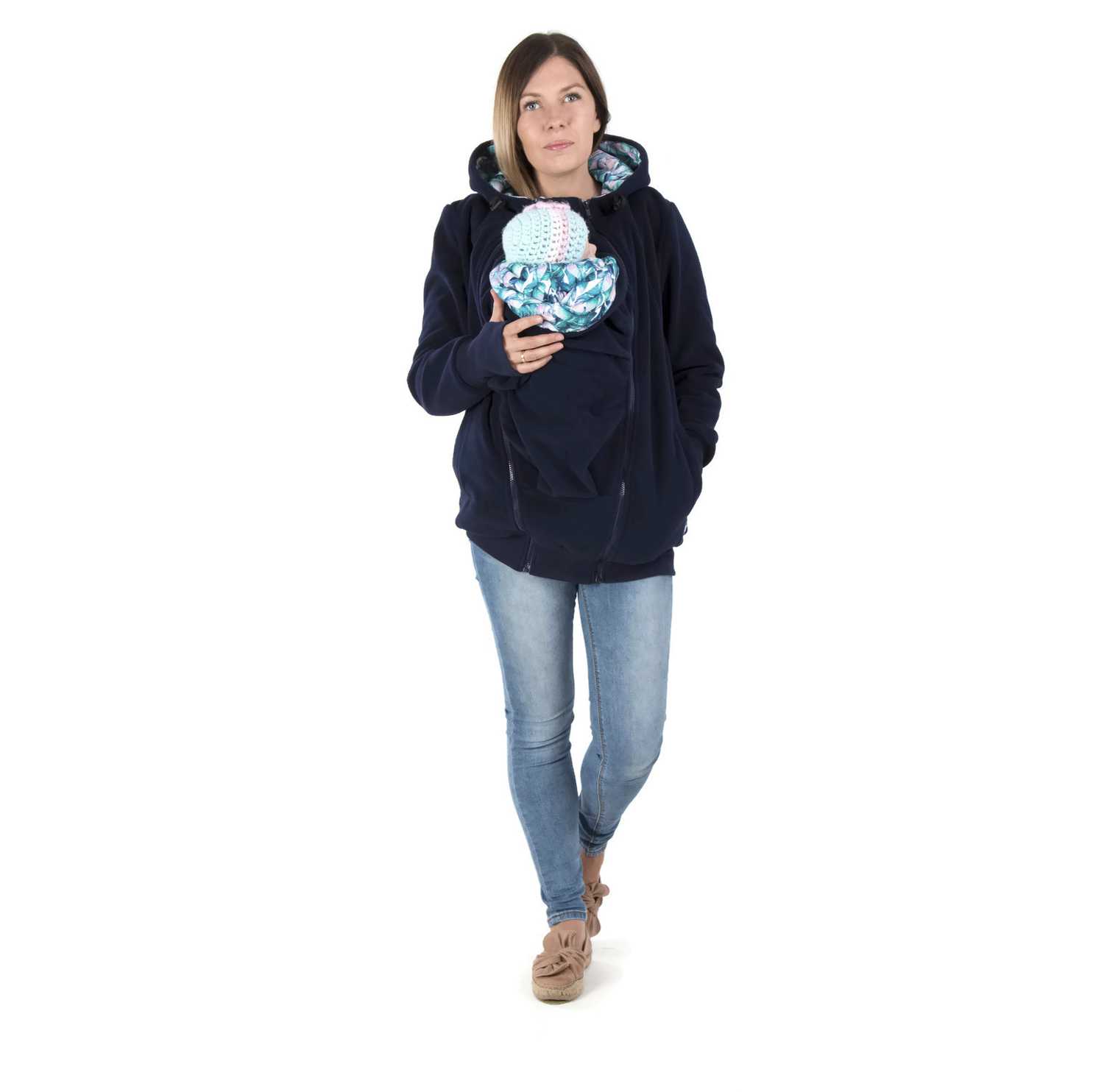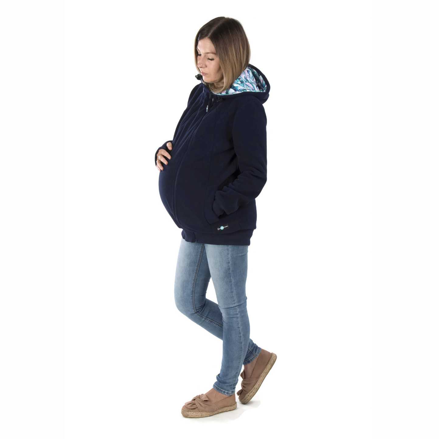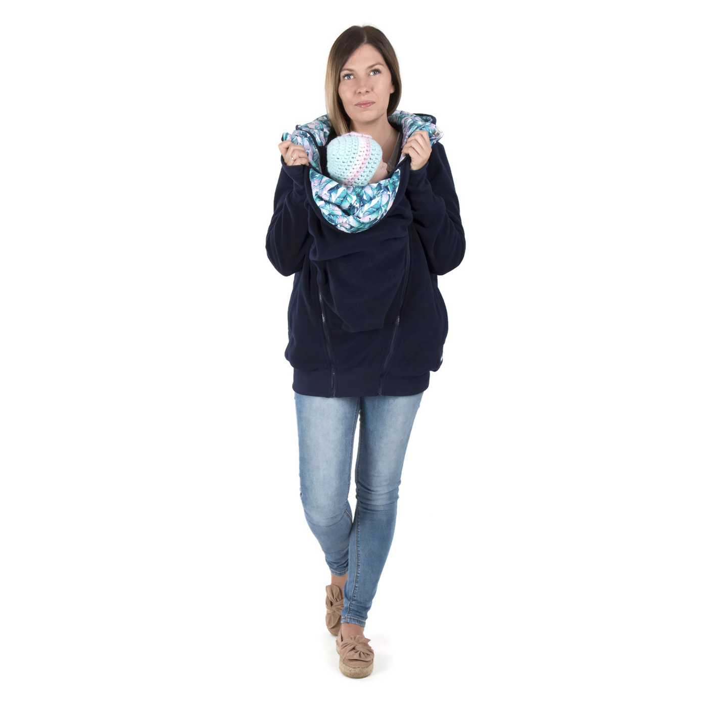 Koala fleece jacket is a great solution for mothers who are planning motherhood, because our sweatshirt has many functions. Thanks to the two inserts, it will be perfect during pregnancy and will fit even a large 9-month-old belly  and will help protect your baby from the cold and wind when babyworn at the front  or on the back. Remove all inserts and you have a perfect casual jacket.