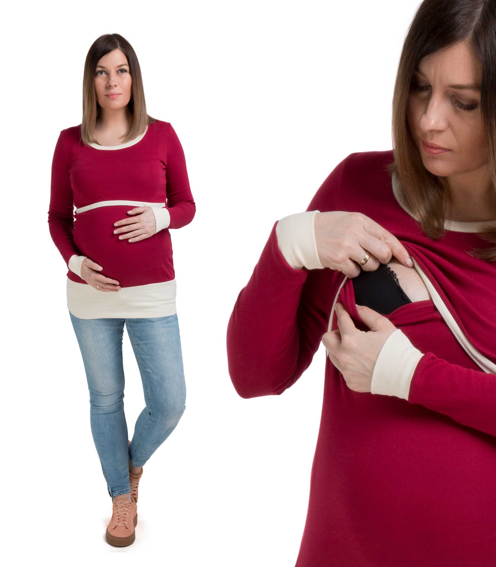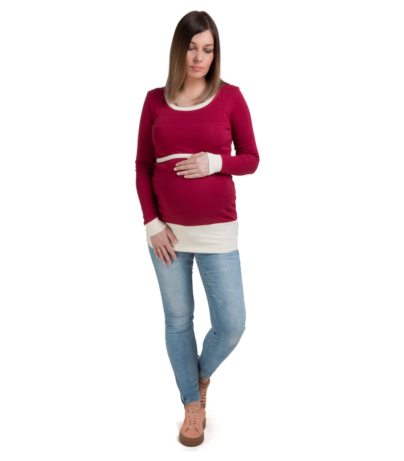 Dwukolorowa tunika dla przyszłej mamy. Długi rękaw sprawdzi się idealnie w chłodniejsze dni. Wykonana z rozciągającego się materiału, który zapewni maksimum komfortu przyszłej mamie. Uszyta jest ze świetnej jakości, polskich dzianin. Materiał nie wypycha się, nie przeciera i nie mechaci. Dzianina jest niezwykle przyjemna. Posiada prosty system, który sprawdzi się w okresie karmienia.