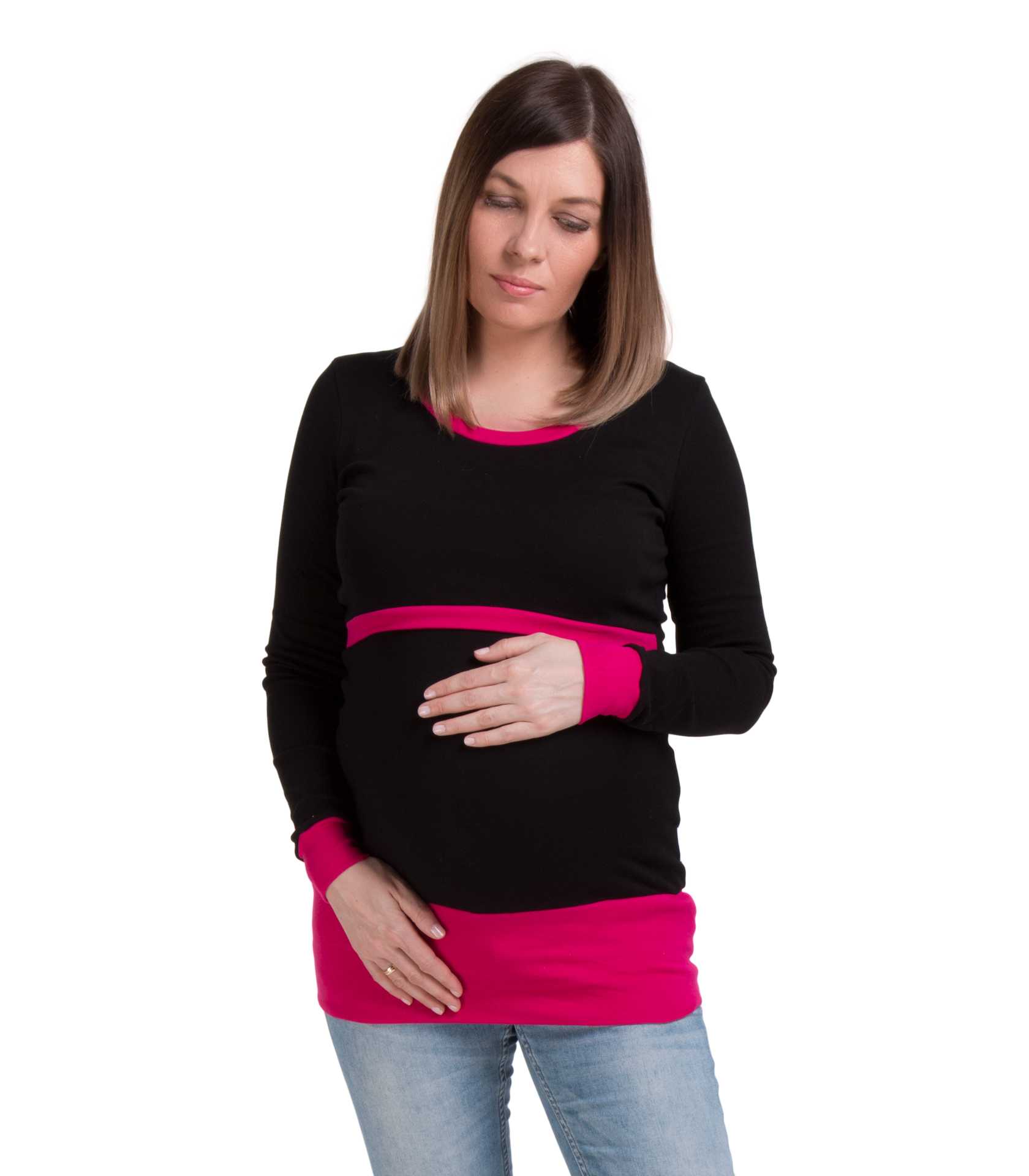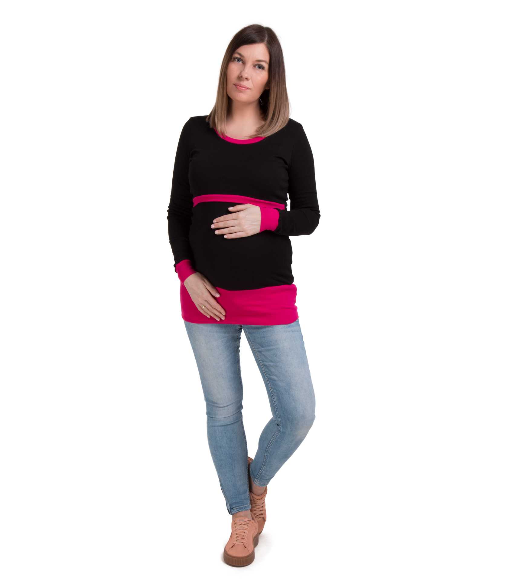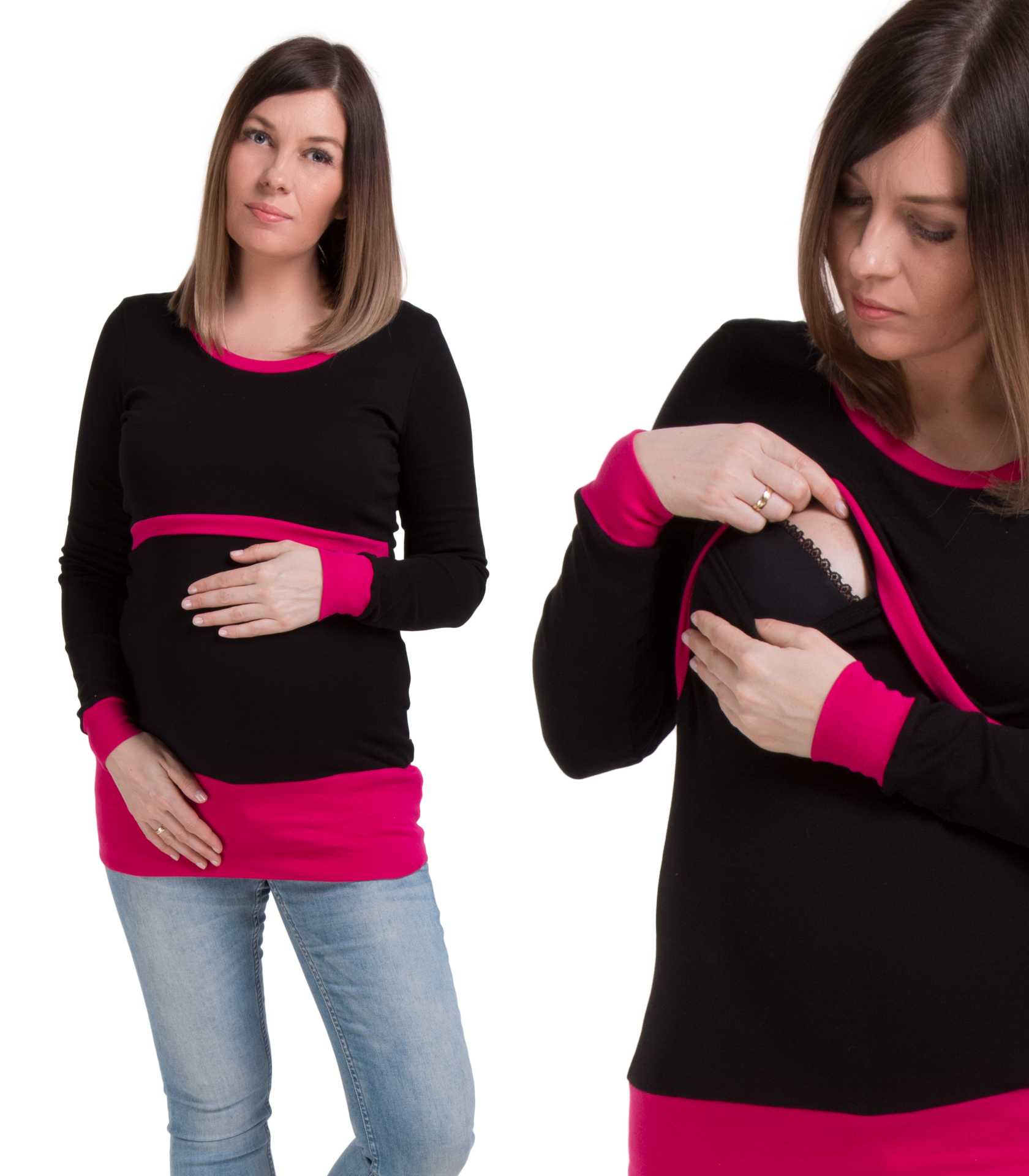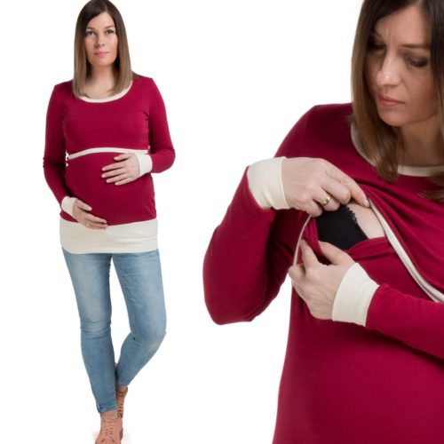 Dwukolorowa tunika dla przyszłej mamy. Długi rękaw sprawdzi się idealnie w chłodniejsze dni. Wykonana z rozciągającego się materiału, który zapewni maksimum komfortu przyszłej mamie. Uszyta jest ze świetnej jakości, polskich dzianin. Materiał nie wypycha się, nie przeciera i nie mechaci. Dzianina jest niezwykle przyjemna. Posiada prosty system, który sprawdzi się w okresie karmienia.