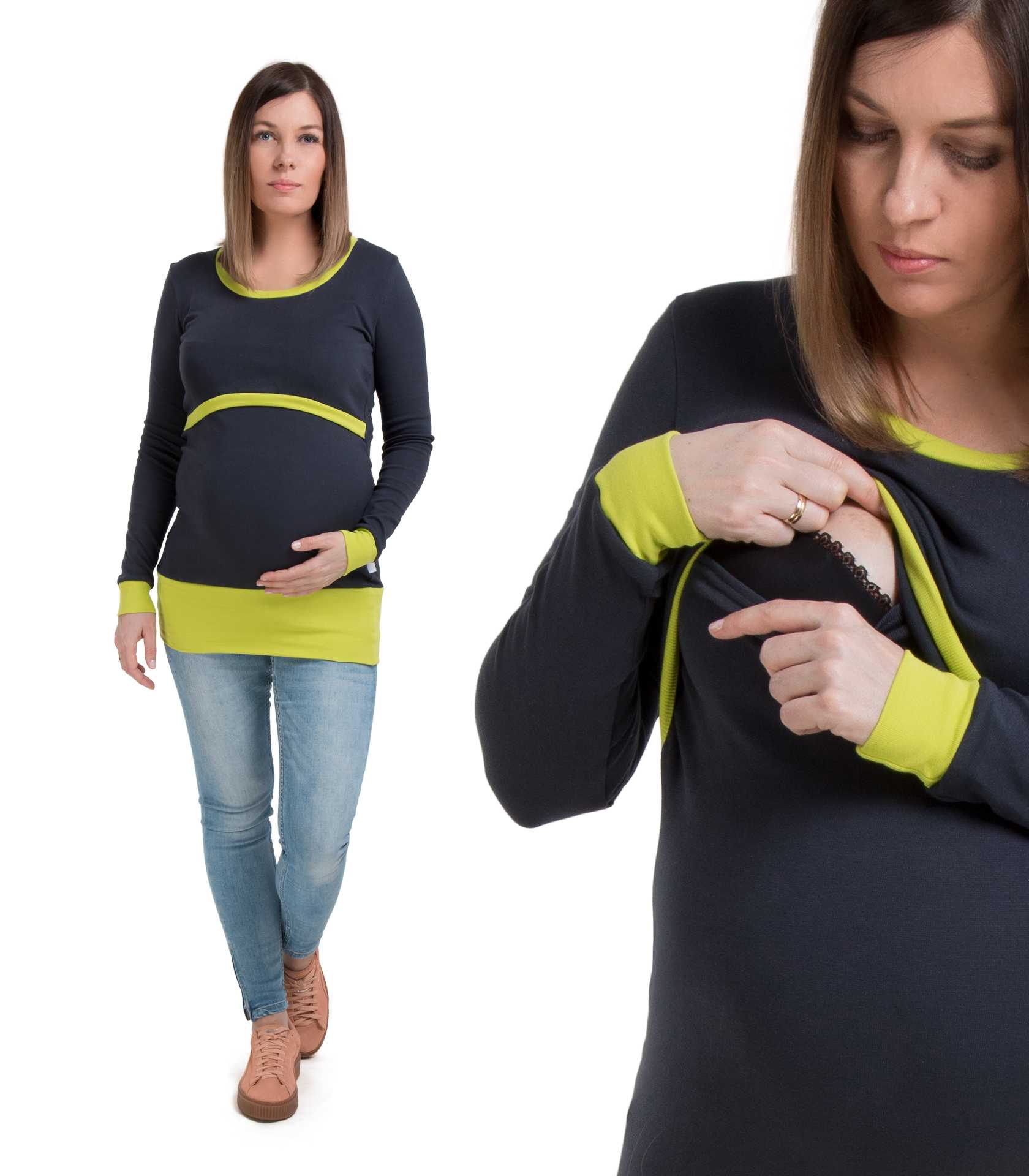 Dwukolorowa tunika dla przyszłej mamy. Długi rękaw sprawdzi się idealnie w chłodniejsze dni. Wykonana z rozciągającego się materiału, który zapewni maksimum komfortu przyszłej mamie. Uszyta jest ze świetnej jakości, polskich dzianin. Materiał nie wypycha się, nie przeciera i nie mechaci. Dzianina jest niezwykle przyjemna. Posiada prosty system, który sprawdzi się w okresie karmienia.