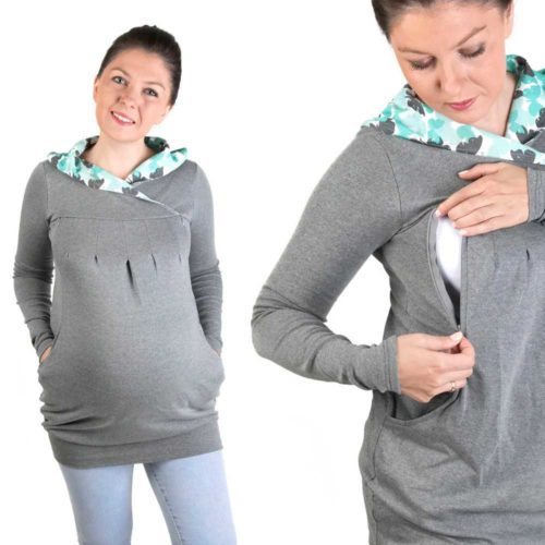 Idealna dla przyszłej mamy, praktyczna. Wykonana z bardzo miękkiego i lekkiego materiału. Wygodna, można ją nosić to od samego początku ciąży, wygląda jak normalna tunika. Posiada dwa suwaki po bokach, które ułatwią karmienie piersią. Idealnie przyda się każdej mamie w chłodniejsze dni.