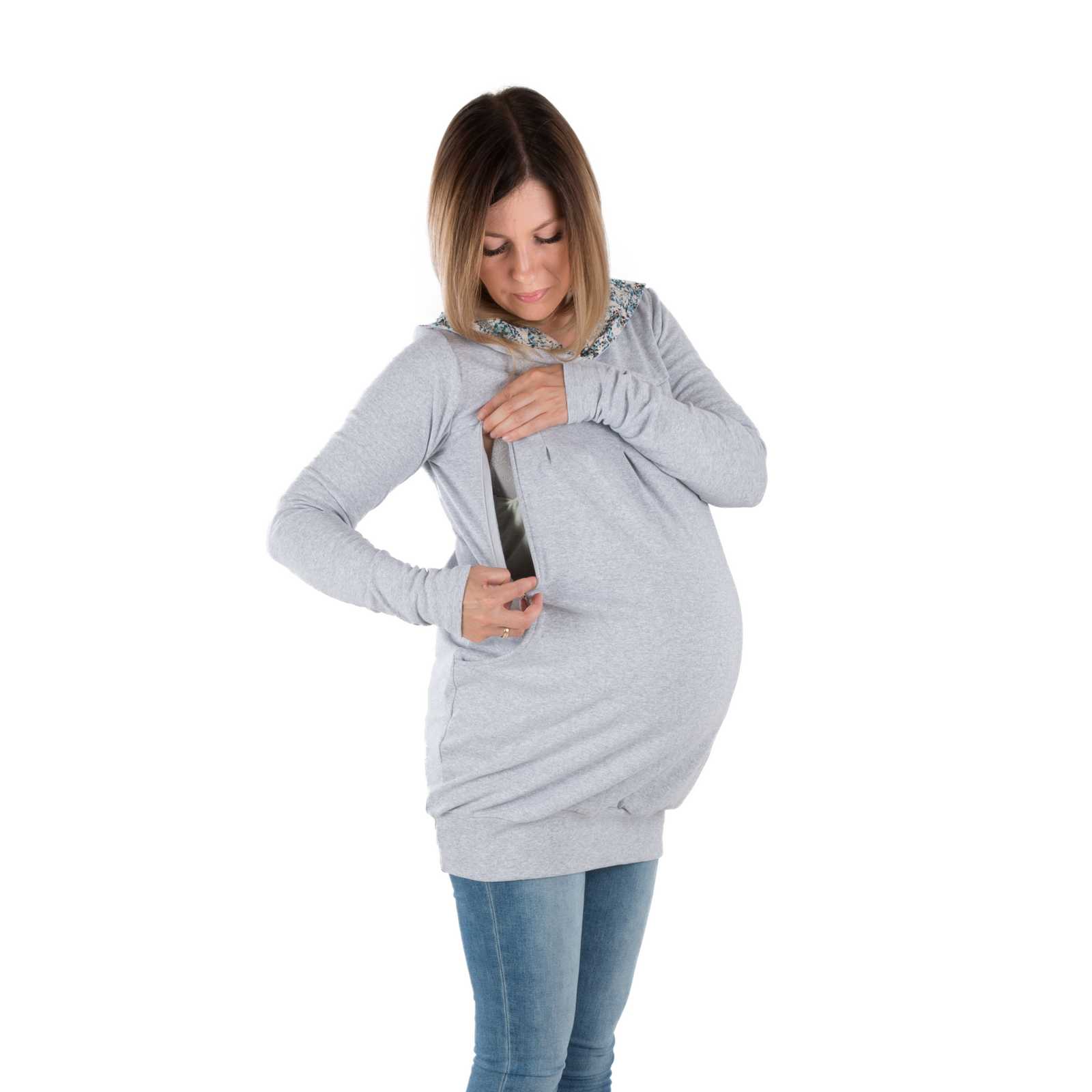 Idealna dla przyszłej mamy, praktyczna. Wykonana z bardzo miękkiego i lekkiego materiału. Wygodna, można ją nosić to od samego początku ciąży, wygląda jak normalna tunika. Posiada dwa suwaki po bokach, które ułatwią karmienie piersią. Idealnie przyda się każdej mamie w chłodniejsze dni.
