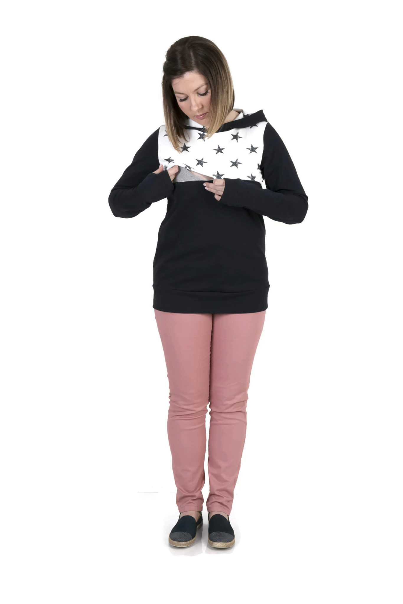 - Jest wielofunkcyjna: można ją nosić w trakcie ciąży, w okresie karmienia i jako zwykłą bluzę