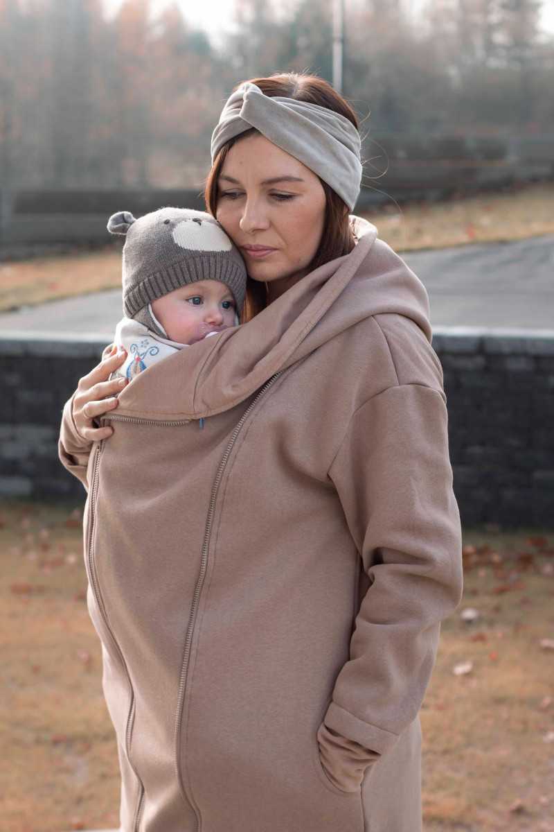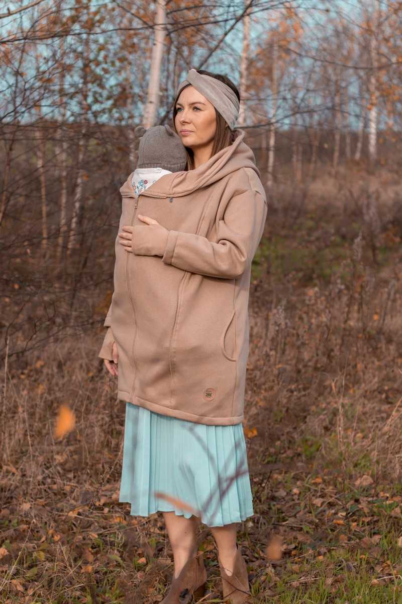 Wielofunkcyjny płaszcz dresowy, który dzięki podwójnemu zamkowi poszerza się tworząc więcej miejsca na rosnący brzuszek podczas ciąży. Niezastąpiony podczas noszenia dziecka zarówno z przodu jak i na plecach. Niezwykle wygodny, nieobcisły krój zapewnia całkowitą swobodę ruchów i prawdziwą przyjemność z noszenia.