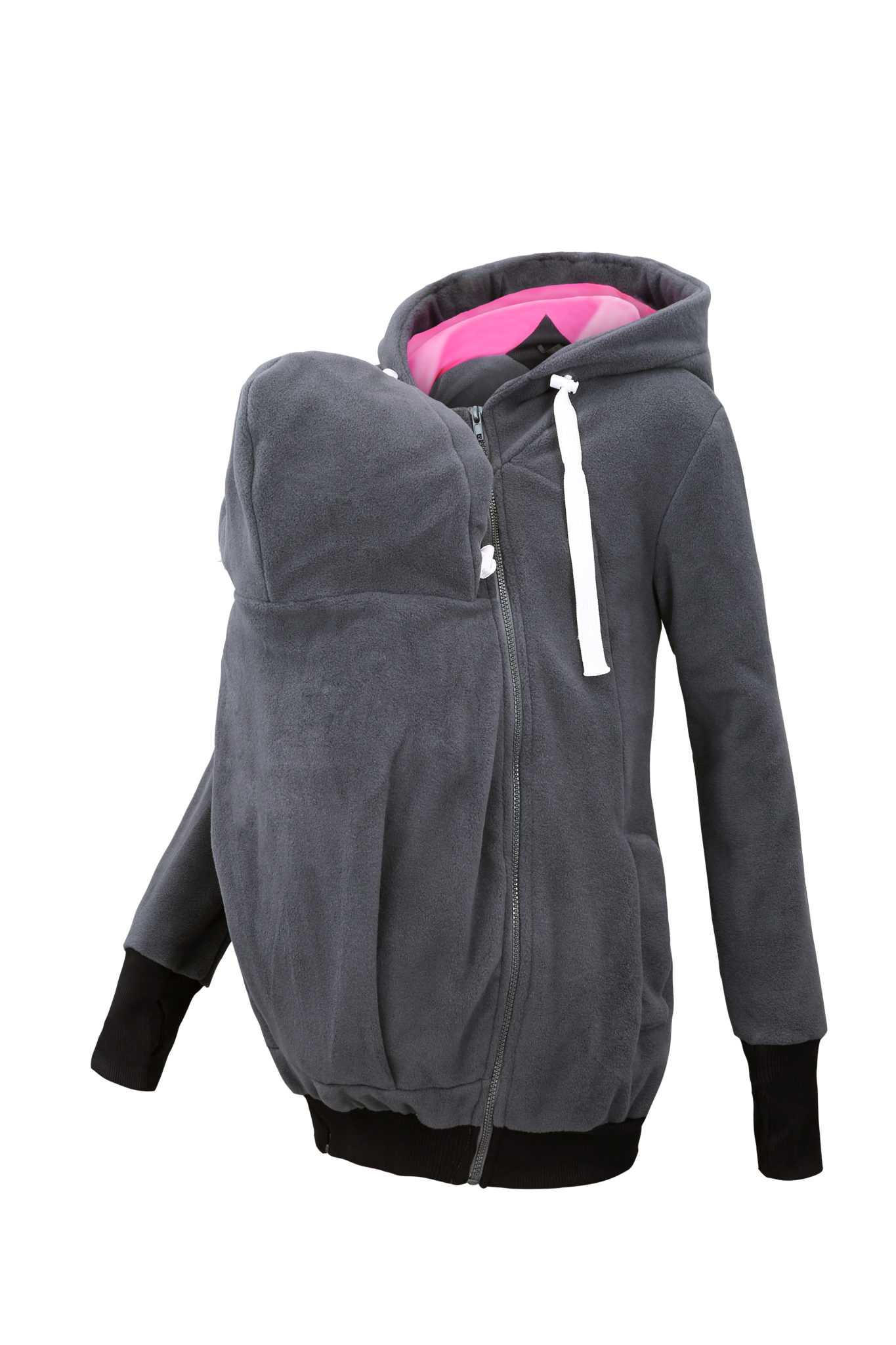 Kurtka polarowa ciążowa i do noszenia dziecka KOALA – GRAFIT/RÓŻ