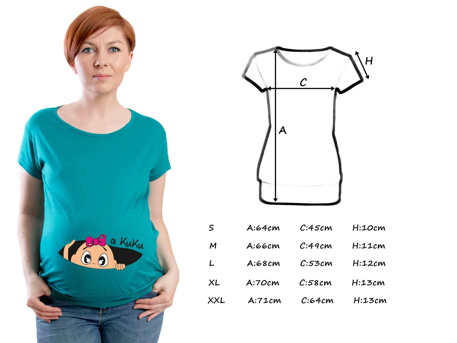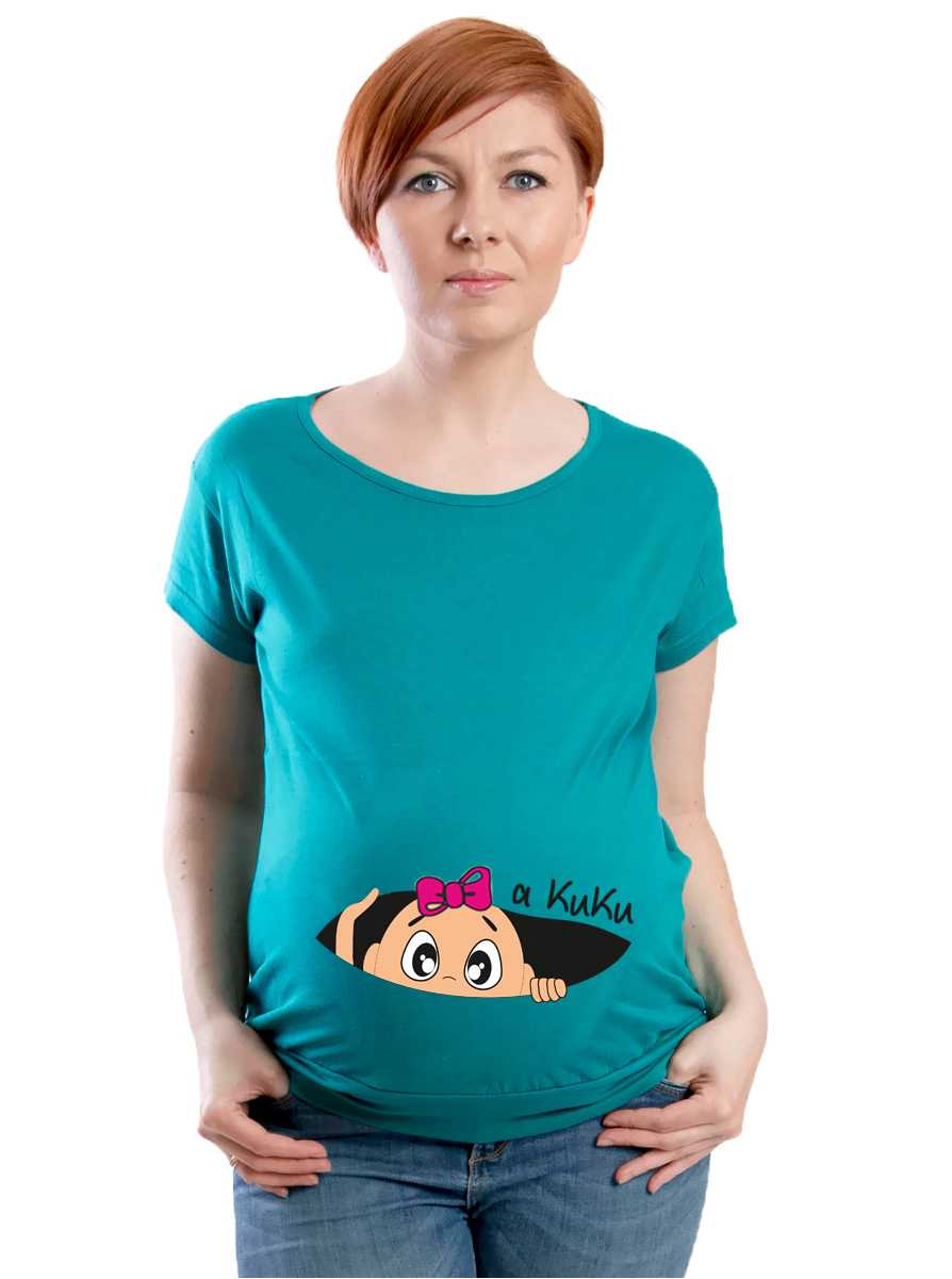 Koszulka ciążowa z buzią dziewczynki i nadrukiem a KuKu