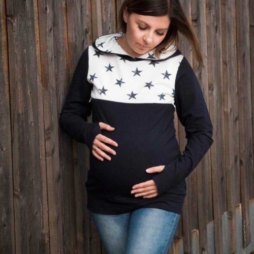 • Bluza jest wielofunkcyjna: można ją nosić w trakcie ciąży, w okresie karmienia, oraz jako normalną bluzę na co dzień