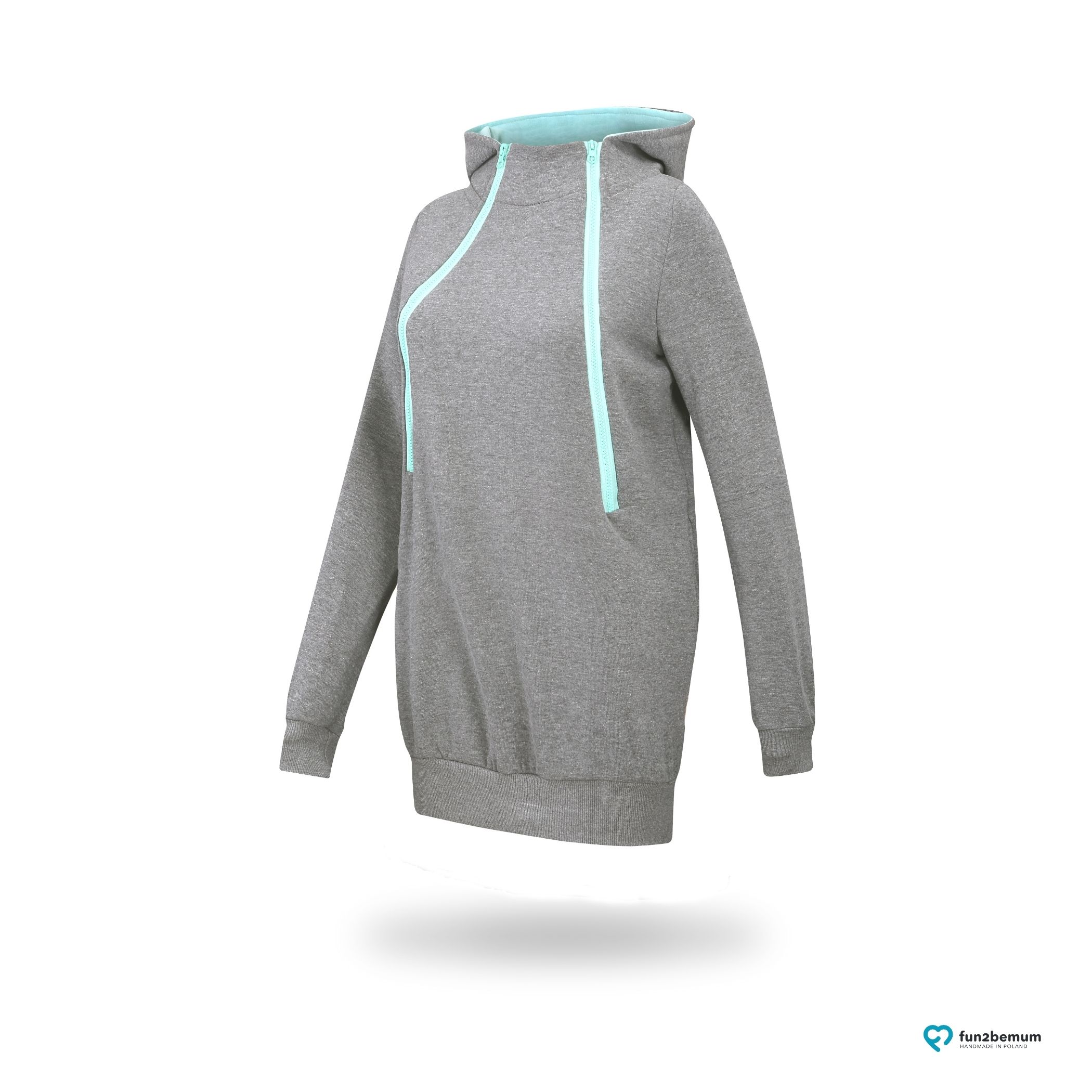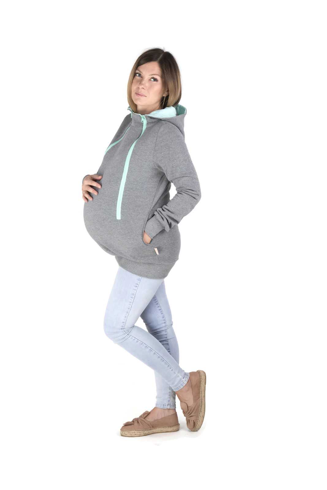 Specjalnie zaprojektowana bluza dla przyszłych mam, do wykorzystania na trzy sposoby: podczas ciąży- unikalny krój sprawia że bluza dostosowuje się do zmieniającej się sylwetki, po ciąży ułatwi karmienie poprzez specjalnie zaprojektowane zamki, oraz jako normalna bluza na co dzień.