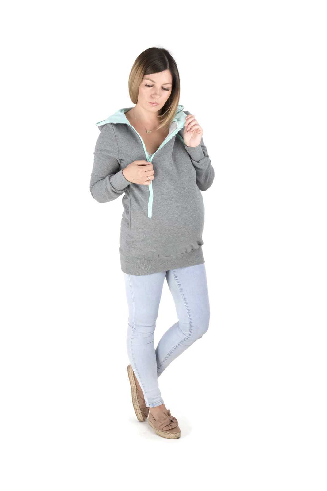 - Bluza jest wielofunkcyjna: można ją nosić w trakcie ciąży, w okresie karmienia, oraz jako normalną bluzę na co dzień