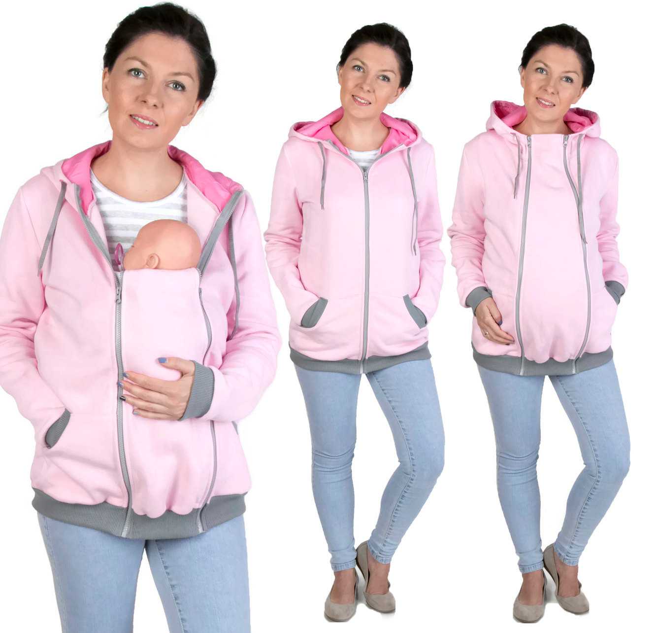 Bluza do noszenia z wpinką ciążową, która umożliwia noszenie dziecka z przodu .